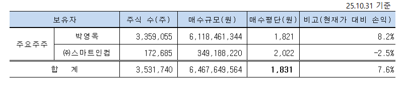 스마트인컴에서 25년 6월 보유물량을 일부 매도한 거래내용이 있었으나 이내 매도한