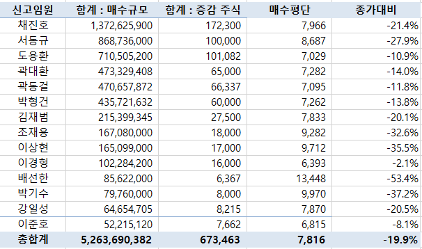 기간간 14명의 임원들이 52억 6천만원 어치의 지분을 매수했습니다...