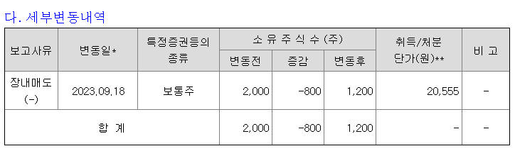 해당 내용은 단순히 장내에서 매매한 내역만을 기준으로